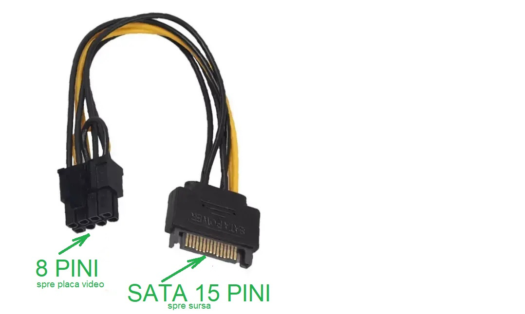 - adaptor SATA catre 8 pini ( alternativa la lipsa alimentare 8 pini din sursa PC )