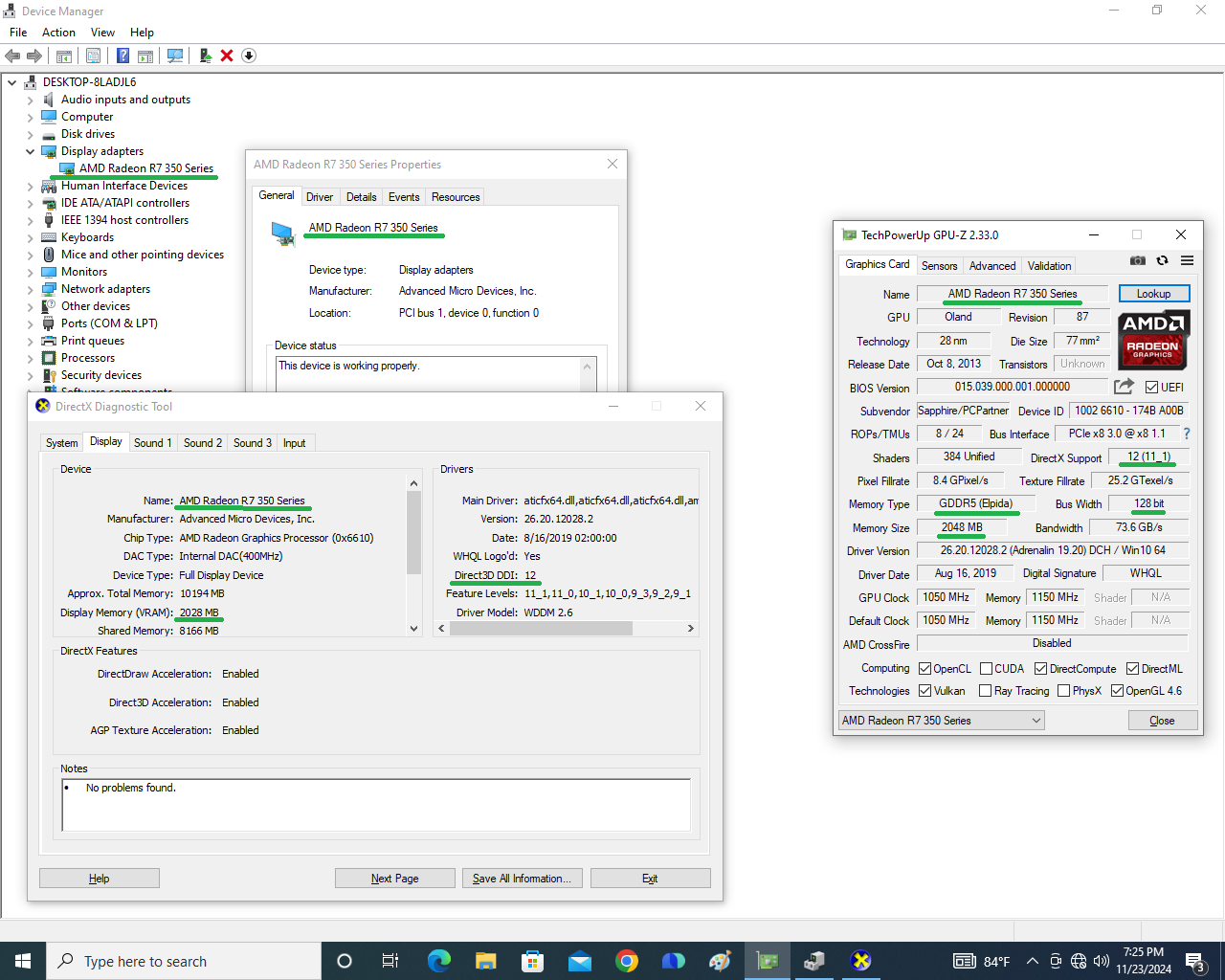 Verificare instalare corecta driver R7 350: